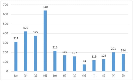 Histogram of the defect sample distribution, where (a) to (l) have been listed in Table 3.