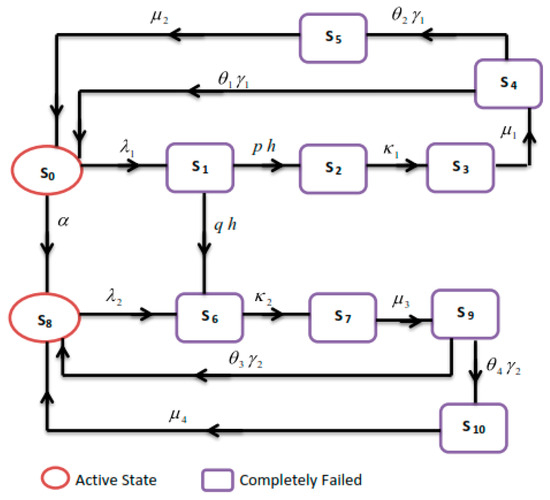 The residuum of this article is organized as follows. Section 2 contains the system assumptions, state-specification and notations. Section 3 presents the mathematical model of this system to derive metrics for the reliability of the system, such as the reliability function, mean time to system failure, and steady state availability, using the Markov process. In Section 4, sensitivity and relative sensitivity analyses of the system parameters are obtained. Numerical examples illustrating the behavior of the system are shown in Section 5. Conclusions are summarized in the final section.