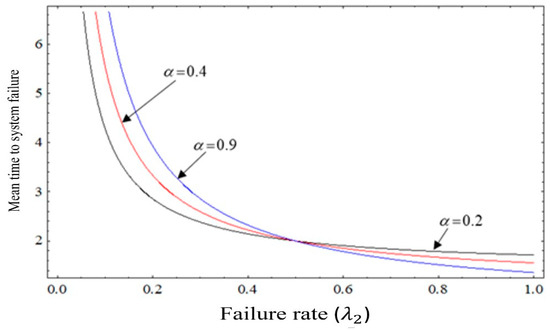 - Figure 2 shows that the mean time to system failure MTSF increases when the rate of termination of the warranty () decreases in the interval and conversely MTSF increases when the rate of termination of the warranty () increases in the interval .