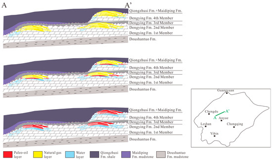Hydrocarbon accumulation process of the Dengying Formation in the study area.