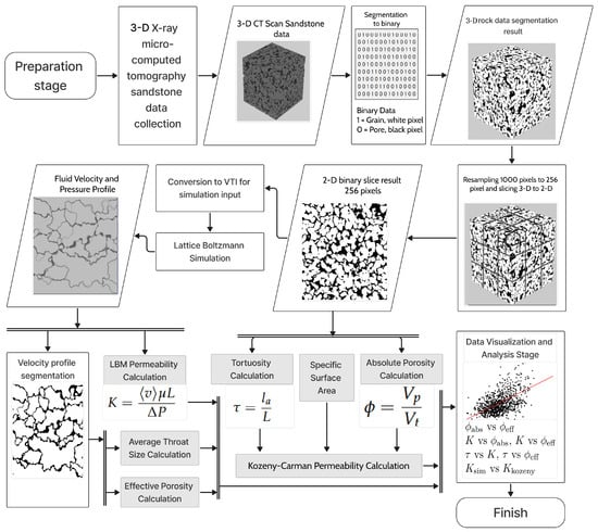 The porous rock parameters were obtained in several stages, starting from data collection to the visualization of the data obtained, as shown in Figure 2.
