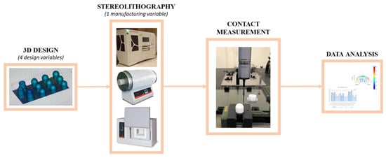 The work conducted in this experiment was carried out in four phases: design, manufacturing, measurement, and analysis. This sequence of operations is illustrated in Figure 1 and described in the following sections.