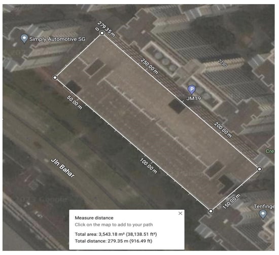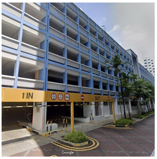 The maximum water storage capacity on the top level of an MLCP is considered to ascertain the feasibility of the design. To maximize the water storage, the capacity of the tank will occupy the top floor of the multi-level carpark. The carpark space used as reference in the current proposed work is Block 273 Jurong West Avenue 3, as shown in Figure 13, Figure 14 and Figure 15. The total surface area of this MLCP is 3311 m3.