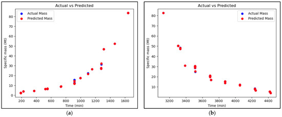 The MSE for GBR and DTR demonstrated values of 0.04 and 0.114, respectively, during the sorption level’s prediction. The MSE measures the average of the squares of the errors, meaning the difference between the estimated values and the actual value [33]. Furthermore, an MSE of 0.04 for GBR confirms the small size of the errors for this model’s predictions of the sorption level. An MSE of 0.114 indicates that the squared errors are low for the DTR, contributing to the model’s effective performance. However, this value is higher than the one observed in GBR. The value of MSE is like the results obtained during the prediction of the photochemical ozone creation potential for the Life Cycle Assessment (LCA) [63]. However, during the prediction of the desorption level in the BNF, both models displayed low MSE 0.012 and 0.013 for GBR and DTR, respectively, which is another indication that the models are making good predictions. It is important to note that MSE penalizes large errors more than MAE, so a very low MSE suggests that the models are making predictions of the desorption close to the actual values of the desorption level in the BNF [33]. Subsequently, GBR displayed higher performance against DTR in terms of MSE evaluation during the prediction of the sorption level in the BNF.