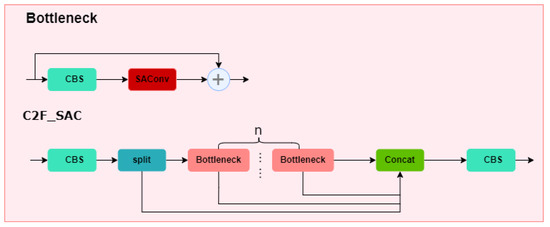 In pornographic sensitive images, targets such as body parts may vary greatly in size and shape, making it challenging for traditional convolutional networks to effectively capture both these details and large-scale features simultaneously, resulting in lower detection accuracy. To address this issue, we attempt to improve the original YOLOv8 convolutional network. Inspired by the DetectoRS architecture proposed by Qiao et al. for object detection [20], we incorporate the SAConv from the DetectoRS architecture into the C2F module. By integrating SAConv into the Bottleneck structure of the C2f module, we can adaptively make it more effective in handling objects of different sizes. Specifically, this improvement primarily involves replacing the Conv in the Bottleneck of the C2F module with SAConv, which we refer to as C2F_SAC. Its structural diagram is shown in Figure 5.