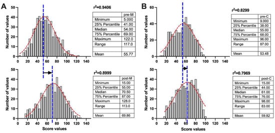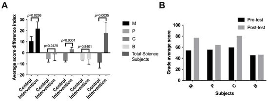 | Class | Pre-Test M | Post-Test M | Pre-Test P | Post-Test P | Pre-Test C | Post-Test C | Pre-Test B | Post-Test B | Pre-Test Total Score | Post-Test Total Score | Difference from Grade Average Total Score (Pre-Test) | Difference from Grade Average Total Score (Post-Test) |