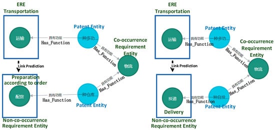 There are three types of relationships in the domain knowledge graph: “Has_Function”, “Has_Structure”, and “Is_Related”. Among them, the “Has” type relationship is between the parent entity and the function and structure entities. In extracting the function and structure entities, this type of relationship has been obtained and can be directly constructed in the graph. The “Is_Related” is constructed based on the network structure similarity between entities. Based on the highly interpretable Jaccard similarity measure, the structural similarity between patent entities with more identical functional and structural entities is higher, and the “Is_Related” is constructed between patent entities above the similarity threshold.