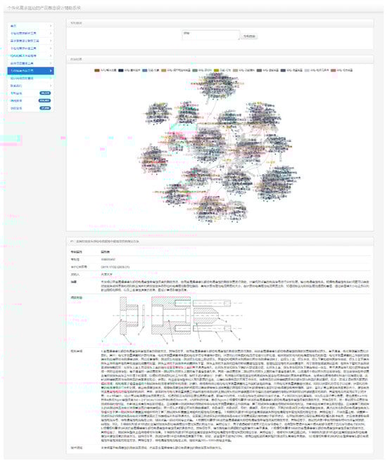 Concept design is a knowledge-intensive process. Design knowledge is a crucial design resource in motivating designers to inspire creativity in concept design. Design knowledge in multidisciplinary fields mainly exists in the form of natural language. The rapid development of NLP technologies, such as named entity recognition, topic discovery, embedding models, pre-trained models, sentiment recognition, text similarity calculation, search recommendation, and text generation, provides opportunities for designers to process unstructured text and obtain design knowledge from it. L. Siddharth, Jianxi Luo, et al. [] reviewed the essential applications of natural language processing technology in concept design. They assigned corresponding natural language processing technology and models to different design stages under the existing conceptual design framework. Jia J et al. [] proposed a method for capturing and reusing implicit knowledge in the design process. The design problem and design solution are represented by constructing a design knowledge graph. The implicit design knowledge is reused through relational learning, tensor decomposition, and other technologies. Jianxi Luo et al. [] proposed a computer-aided design creative generation method based on the InnoGPS system. In response to the problems of traditional design creative generation relying on the knowledge or intuition of human experts and high uncertainty, combined with data-driven design methods, a cloud-based computer-aided rapid creative process is provided. The InnoGPS system proposed in this study integrates an experience network diagram of all technical fields based on international patent classification, with functions such as technology spatial mapping, technology positioning, neighboring domain recommendation, map browsing and domain discovery, and concept discovery within the domain. Liu Q et al. [] proposed a function–structure concept network construction and analysis method to support an intelligent product design system, exploring the design information association containing explicit and implicit associations as a stimulus to stimulate creativity to support design conception. Ye F et al. [] proposed a cross-domain knowledge discovery method based on a knowledge graph and patent mining. Knowledge elements are classified through natural language processing-related technologies such as BERT (Bidirectional Encoder Representations from Transformers) and word2vec, and the correlation between cross-domain knowledge is mined. Luo J et al. [] proposed a knowledge-based expert system to guide data-driven design conception through knowledge distance.