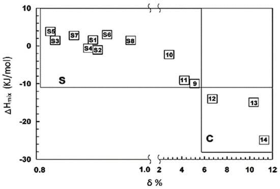- Senkov, O.N.; Miracle, D.B. A New Thermodynamic Parameter to Predict Formation of Solid Solution or Intermetallic Phases in High Entropy Alloys. J. Alloys Compd. 2016, 658, 603–607. [Google Scholar] [CrossRef]