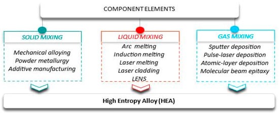 - Zhang, Y. Preparation Methods of High-Entropy Materials. In High-Entropy Materials; Springer: Singapore, 2019; pp. 65–75. [Google Scholar]