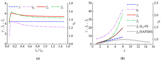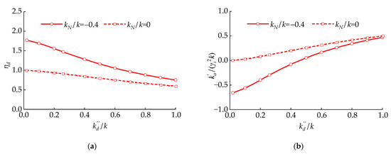 When , effective displacement factor and stiffness amplification coefficient : (a) ; (b) .