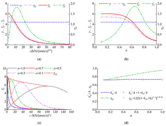 (4) There exists an optimal combination of damping coefficient c and index α that maximizes CLNVD’s fE. Under this optimal combination, c and α need to satisfy = 1 + kN/k or ηd = 1/[2(1 + kN/k) 1+α] 1−0.5α.