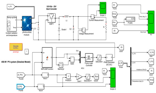 Block diagram of the model for the P&O algorithm with a fuzzy logic controller.