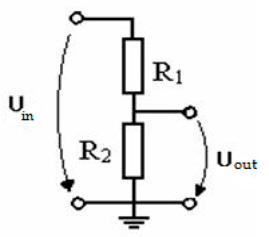 In this case, we used a voltage divider instead of a voltage sensor of 25 V. The Arduino can only measure the voltage rates within the interval 0–5 V, thus Uin = 25 V and Uout = 5 V (maximum). The ratio between resistors can be calculated from the above formula, and the result will be: