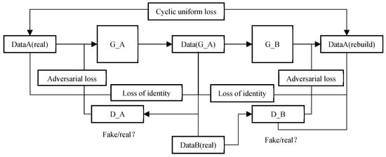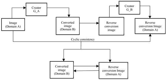 The schematic diagram of the C3GAN model is shown in Figure 2. The model comprises four neural networks: two generator networks and two discriminator networks. Specifically, one generator network is responsible for transforming images from domain A to domain B, while the other performs the inverse transformation. Each discriminator is trained to distinguish between real images and those generated by the corresponding generator.