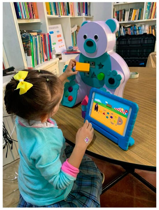 For LAA11, the teachers decided that, to carry out the figure and color activities, a physical object was required with (i) spaces to insert the geometric figures and (ii) primary and secondary color buttons. In addition, a tablet was used to display the multimedia experience and the counting activities. These elements require the active interaction of students with the contents.