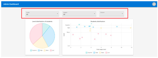 For LAD1, the Coco Shapes web-application dashboard allows filtering by grade, subject, and student, as shown in Figure 4. In this way, teachers can configure the data they want to view according to their needs and focus on the relevant data from large sets of information.