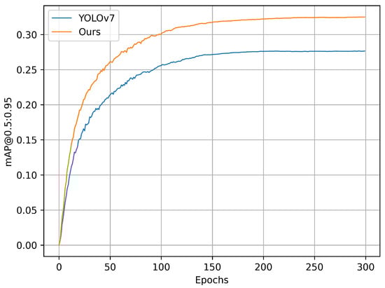 Comparison diagram of mAP@0.5:0.95 between YOLOv7 and the proposed algorithm.