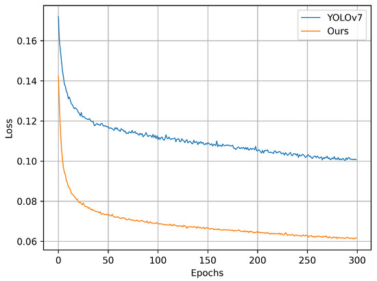 Comparison diagram of Loss between YOLOv7 and the proposed algorithm.