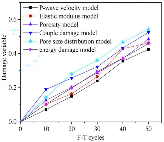 5.1. Comparison of the Damage Variables under F–T Cycles