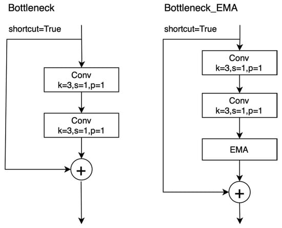 Structural comparison diagram between Bottleneck and Bottleneck_EMA.