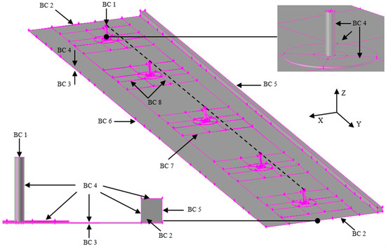The structure of the guideway without an air tube is divided into hexahedral meshes according to the actual size parameters, and its initial boundary conditions (BCs) are shown in Figure 6.