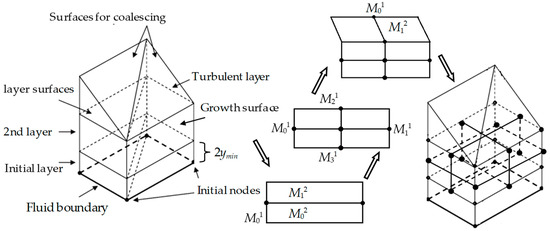 The surface along the thickness direction is the growth surface, so each hexahedron grid is composed of four growth surfaces and two layer surfaces.