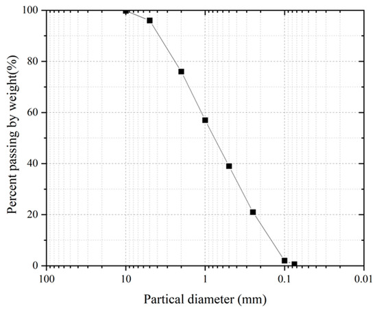 The grading curve of the soil sample used in the study is shown in the Figure 4. The steep grading curve means uniform soil particles, poor grading, and possibly unfavorable internal pore structure of the soil, which is not conducive to soil water retention. In order to improve the water holding capacity of the soil, we used high-performance ester materials.