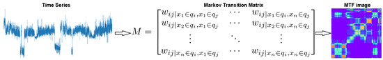 We transformed them into Markov Transition Field (MTF) images. This allows us to leverage powerful image processing techniques for feature extraction. Given a quantized EEG signal , we construct the transition probability matrix W: