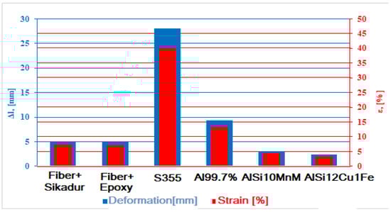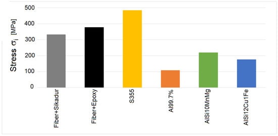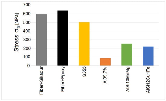 When the strength of a hook is related to its mass (in the case of the same material), the material’s performance indices are obtained, showing that the model made of CF is 2.5 times more efficient than S355, with AlSi10MnMg being 11% more efficient and AlSi12Cu1Fe being 3% below the performance of steel. These indices provide the satisfaction of research in the field of alternative materials for the manufacturing of towing hooks. Certainly, if the manufacturing processes for the production of both CF and AAl towbars were improved, to achieve more homogeneous designs, a better performance would be achieved even compared to steel.