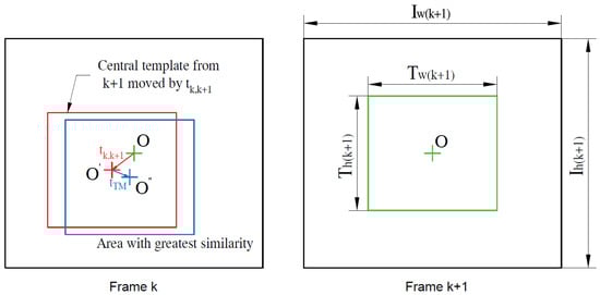 where represents the estimated movement obtained after the filtering process. The size of the template, , is maximized for the frame to avoid losing information by using small templates. These dimensions are determined using the following expressions: