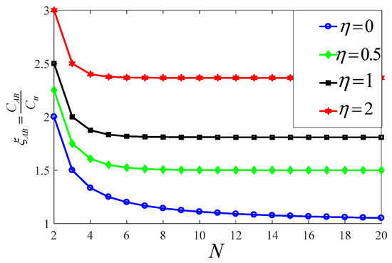 Figure 7 presents the variation of with the number of turns under various . It is observed that when N > 10, is very close to the limit . According to Equation (7),