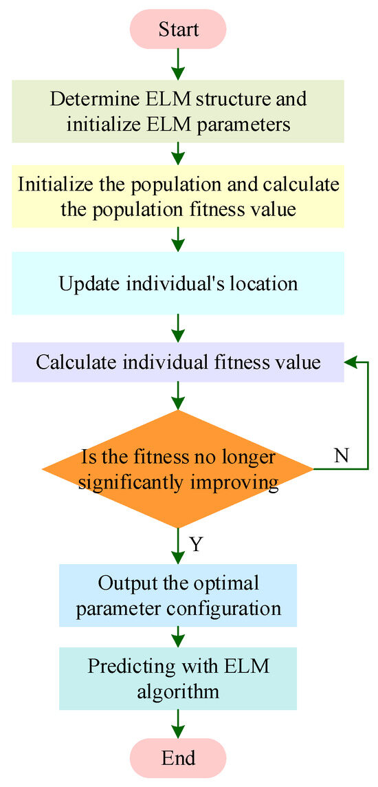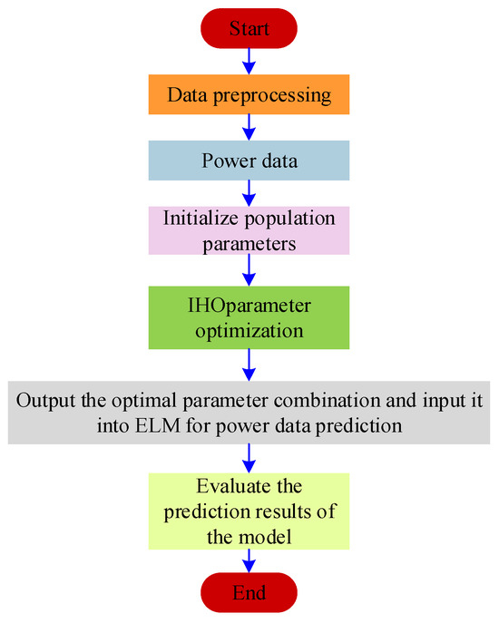 The steps to optimize the weight and threshold parameters in the ELM using the IHO optimization algorithm are as follows; the flowchart is shown in Figure 5.