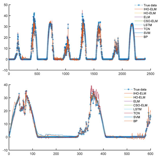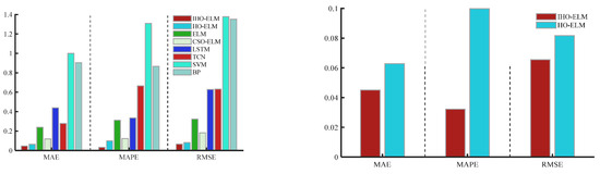 - From Figure 8, Figure 9, Figure 10 and Figure 11, the accuracy of the ELM model using optimization methods is significantly higher than that of a single optimized ELM model without using optimization methods, indicating the necessity of connecting the weights and thresholds of the optimized ELM model.
