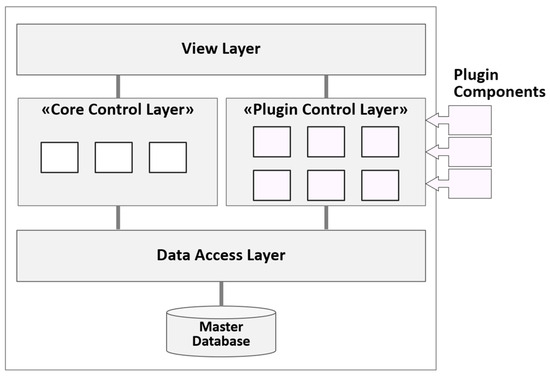 A key feature of any software platform is its capability to enable effective customization of platform functionality. For this reason, these functional components were analyzed for their potential variability. Functional components with variability are placed in the plugin control layer, and components with no variability are placed in the core control layer, as shown in Figure 3.