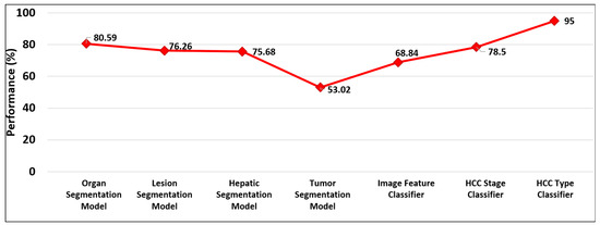 - An Additional ML Model in the Diagnosis Process: Hepatic Segmentation ModelThis model is required for segmenting hepatic segments on liver organs. These models are trained using the U-Net algorithm to utilize the encoder–decoder feature that allows for precise localization and segmentation.