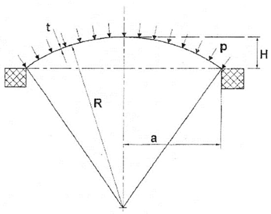 The latest methods of testing spherical shells mostly rely on laser scanning to obtain the exact geometry of the component. Advanced numerical analyses that take into account the scanned geometry of the shell are then carried out [6,7,8], and the results obtained are compared with the experimental results. The convergence of the results obtained is very satisfactory; however, these are research works and not design formulas. The analytical formulas are intended to provide engineers the ability to estimate the load carrying capacity of a spherical shell in an easy way, with the greatest possible convergence of the results between the analytical calculations and the actual behavior of the spherical shell.