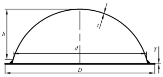 The spherical shells produced have a nominal base diameter of d = 146 mm, a nominal wall thickness of t = 1 mm, and a nominal height of h = 37 mm, and the shell radius R was determined to be 90.51 mm Figure 11.