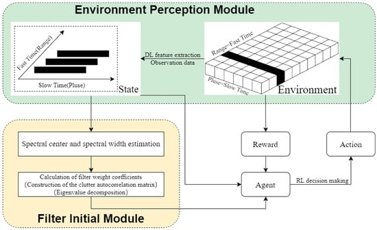 Diagram of the principle framework of the adaptive clutter intelligent suppression method based on DRL.