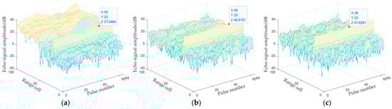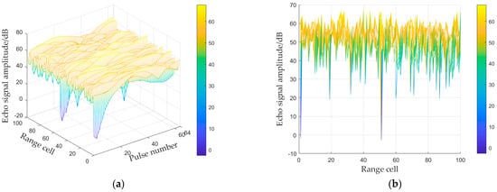 where  is the clutter, and  is the Gaussian white noise generated by the receiver. Based on Equation (2), the fast- and slow-time-dimensional echo matrix of the echo signal is established. Fast-time-dimensional pulse compression of the matrix can be obtained as