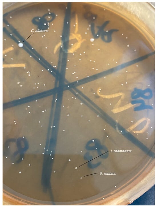 - Atanasov, N.; Evstatieva, Y.; Nikolova, D. Antagonistic Interactions of Lactic Acid Bacteria from Human Oral Microbiome against Streptococcus mutans and Candida albicans. Microorganisms 2023, 11, 1604. [Google Scholar] [CrossRef] [PubMed]