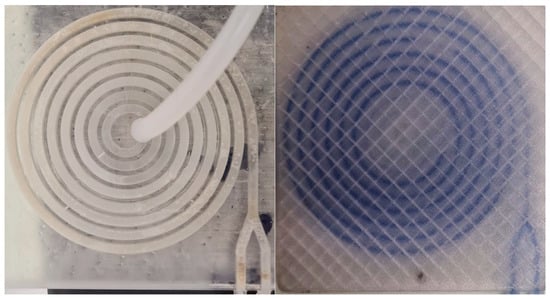 Inertial microfluidics, an emerging field, exploits the behavior of fluids in microscale channels under the influence of inertial forces. In contrast to conventional microfluidic systems, where viscous forces dominate, inertial microfluidics operates in a regime where inertial effects become significant. By harnessing inertial forces, particles can be sorted, focused, or separated based on their size, shape, or deformability, making inertial microfluidics a versatile tool in various applications such as biological sample processing, drug delivery, and diagnostic assays [14,20]. Some authors have presented 3D-printed inertial microfluidic devices for separation. For example, Bazaz et al. [21] present an inertial microfluidic device for cell separation. However, instead of 3D printing it completely in one piece, the authors bonded the 3D-printed part to a transparent PMMA sheet using a double-coated pressure-sensitive adhesive tape. Enders et al. [22] present a high-efficiency 3D printed microfluidic spiral separation device, also for cell retention. No papers were found in the literature describing the separation of water-powder dispersions presented in this study.