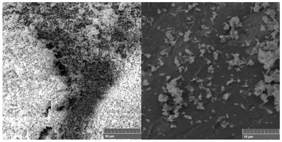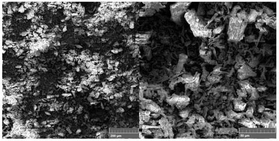 The SEM micrographs of the baby powder sample, depicted in Figure 4, provide a detailed view of the powder’s morphology at two different magnifications: 200× and 2000×. These images offer critical insights into the structural characteristics and morphology of the baby powder.
