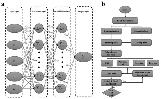 Applied ML model (a) artificial neural network structure (b) support vector regression flow chart.