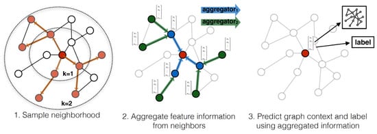 - Hamilton, W.; Ying, R.; Leskovec, J. Inductive Representation Learning on Large Graphs. In Proceedings of the International Conference on Neural Information Processing Systems, Long Beach, CA, USA, 4–9 December 2017; Curran Associates, Inc.: Long Beach, CA, USA, 2017. [Google Scholar]