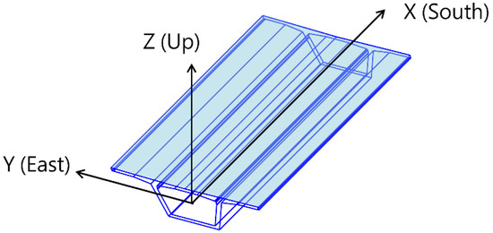 Consider a single box girder as a simply supported beam. First, calculate the axial strain and curvature (Figure 3). Acquire the axial displacement by integrating axial strain. Based on the Euler–Bernoulli beam equation, it is possible to calculate the displacement for curvatures: the vertical displacement and the horizontal displacement.