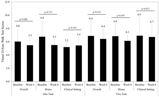Timed 25-Foot Walk scores for the patients at both baseline and after the 6-week study period.