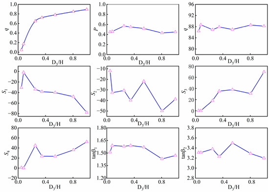 | Parameters | m (m) | H0 (m) | α (°) | D3 (m) | D1 (m) |