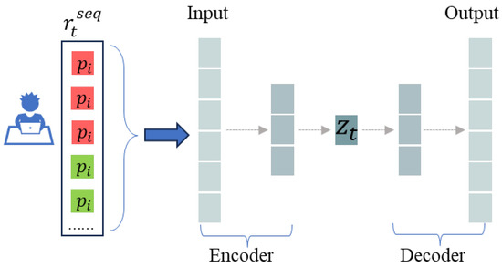 The model’s architecture is depicted in Figure 4. The student’s answer sequence to the same exercise is used as the VAE input, with hidden layer information being learned and extracted as the personalized response state, thereby enabling the modeling and tracing of the student’s knowledge state. The encoder–decoder structure of the VAE is defined by the following equations:
