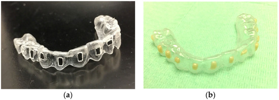 - Experimental procedure: the pre-loaded template was placed directly on the model’s teeth. Light pressure was applied around each attachment, and each template shape was light-cured according to the instructions for the composite material. No finishing and polishing were performed after the template was removed.